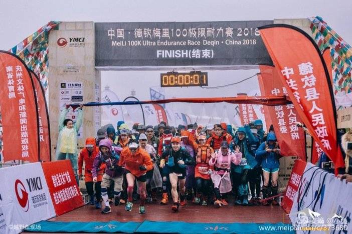 终于,夜深了,终于,看见终点的拱门了,终于,一切即将结束了,终于,可以去睡觉了。终于,最后200米我小跑着奔向终点线,跳上终点台,在梅里雪山卡瓦格博的见证下,在心底大声呼喊:梅里一百,鲨鱼终于归来!