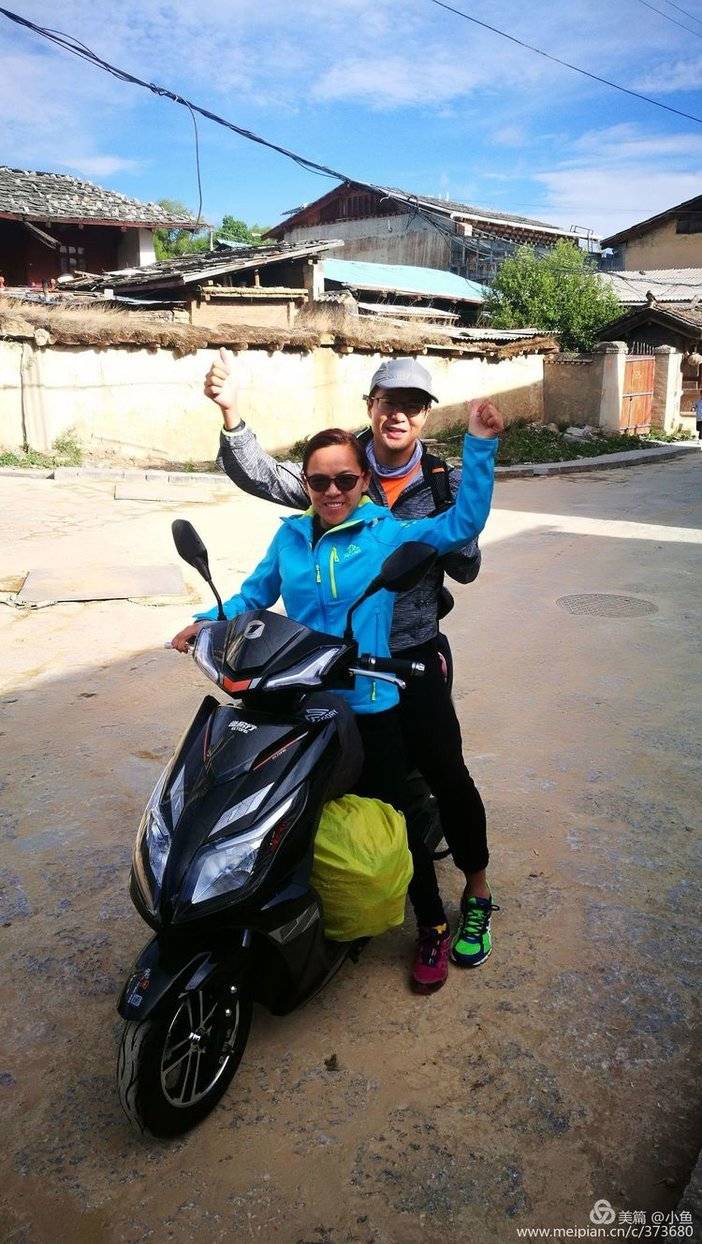 后来超过一个100公里组的男生秋枫,他说“哇,你爬坡太厉害了嘛”,于是我们边喘着粗气不停爬升,边有一搭没一搭的聊起来,才知道原来我们都是云南人都在云南悦跑团里,他说他很会拍照,但此时太累了都不想拍,我说我跑得不好,但现在状态不错要抓紧向前……后来在路上又遇见过,再后来他很任性的退赛在下雨崩住了一夜,后来的后来,赛事结束后,我们碰巧拼了同一辆车从飞来寺到香格里拉转机,登机前一整个上午在香格里拉一起租了个电动车环纳帕海,后来我先飞了……感谢秋枫寄回我的充电宝!