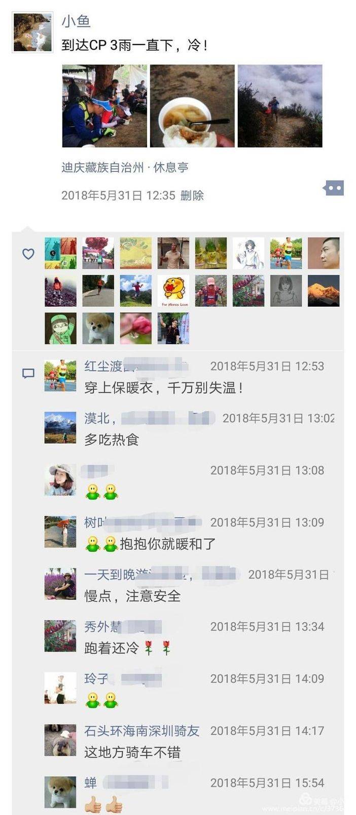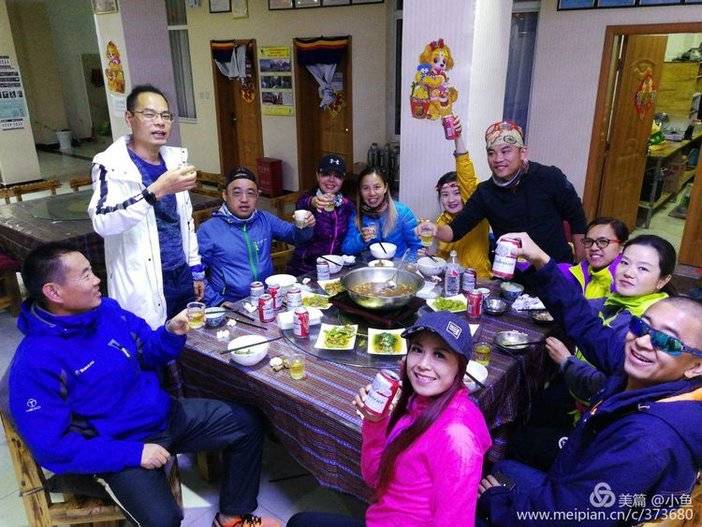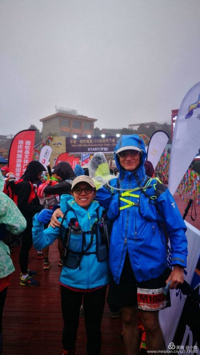 刚到CP5上雨崩,就碰上同在我们红河跑吧的Tao@跑跑,又激动又佩服啊,他是100公里组的,才开始就轻轻松松超我一个站(CP4)。在起点合影出发,在这里合影走人,你去你的冰湖,我走我的雨崩,干两碗白糖热稀饭,彼此祝福吧,扎西德勒!