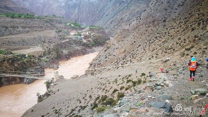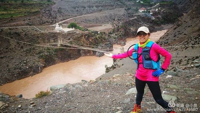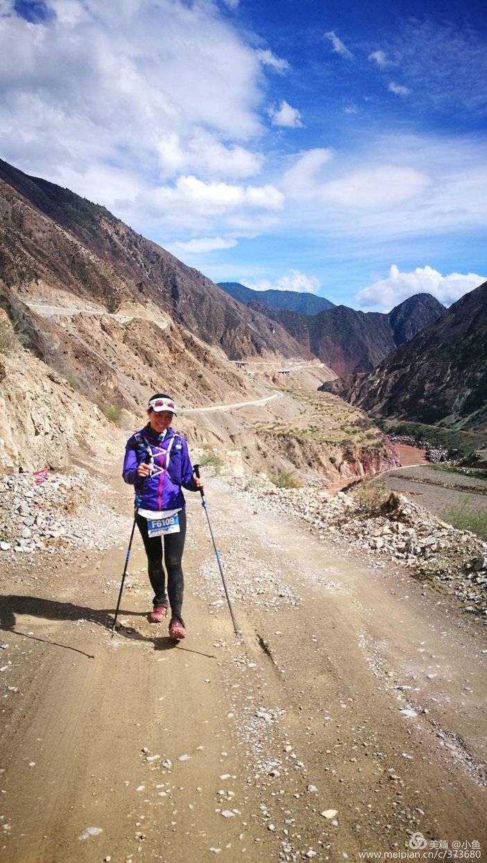 独自惊险穿越尼农大峡谷后,到达赛程最低海拔2023米的CP12尼农村,一进站就看见志愿者帮一个姑娘在脚上喷药,我猜这肯定是目前排名第三的那位了,虽然她于我是陌生的跑友,我们之间没有任何交流,不知道她的能力和状态,而且似乎志愿者跟她还蛮熟悉,估计是位大神,但当看到机会就摆在触手可及的面前时,我心底还是无法自控地滋生出想要努力一争的念头,所以当她出站后,我急急忙忙叫志愿者大哥帮我往水袋灌了一瓶饮料就立马出发(也顾不了大哥好心地说,前方是连续八公里的爬升,天气又热,你还是多带点水吧)。过江的桥面是平路,我小跑着去追已走出几百米远的那个姑娘(有个男生和她一起走在前方),过了桥就开始盘山,我尽量不停歇,终于用慢跑加快走的方式追到了她俩身后,姑娘很友好地跟我打招呼“快上来”!嗯,这温暖的三个字让我觉得倦意速消,于是三个人一边爬坡一边大声地攀谈(主要是我大声,大嗓门没办法,而且又喘着粗气,由此带出来的话语肯定小不了声),他俩看起来比我疲惫,而我,也许是大声说话反倒来了精神。男生来自香港,我还让他给我拍了一段奔跑的视频,姑娘来自重庆(或是大理),我说自己参赛经验很少,这次很挑战不知道能否完赛,她鼓励我说“没问题,这次完赛后,甚至可以去参加百公里了”,她告诉我港百是最容易完赛的百公里,等报名的时候通知我。可她当时太累,只好约了到终点再加微信。赛后才知道她叫墨小妖。