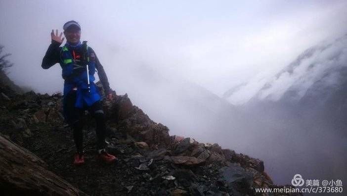 到了CP13拥用,志愿者很激动地说我很棒,目前排第三,告诉我第一刚过了CP14,但第二才出本站没多久,看我这种状态,说不定能追上她。此时我的好胜欲望又强烈了起来,小明(哈巴雪山的向导,赛前我看好他会是前三的,却还没到CP1就因为下山冲太快太猛受伤就慢慢摇了,没想到在这里追上他)也对我抱有希望,于是,本想去一下厕所再出站的,看看厕所在相反方向的两三百米外,就只好暂时夹住尿们继续上山赶路了。出站后,小明叫我赶前面去追一个白衣男子,告诉他,他的手机忘记在CP 13了,叫他慢点儿等着小明帮带来,我横切着半山腰的碎石路小跑着去追,追了好久才看见一个白衣身影在远方若隐若现,怕他跑远了,只好大声呼喊,“喂!……啊哦!……前面的男生,等一下,等等我……”,这样重复了好几遍还是没反应,只好边往前追边加大分贝继续对他喊话,这回的分贝终于越过了山风的抵抗,虽经距离削弱但还是有些微的动静传到他耳旁,他终于停下来转过身,我赶紧加上“你的手机……是不是……忘记在CP点啦”,重复两三遍后,他终于听明白回话“是的”,“你等着……后面……有人给你送来”,还好我现在不缺氧,要不然此番折腾真是够呛的。