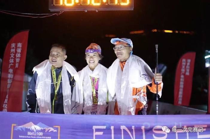 因为真的没有如何一种力量能支持我再走下去了。靠着这一口气息我爬到了平路,看见了路灯,大哥说现在离关门还有2个小时。大姐因为同伴来接,提前奔跑到了终点,大哥也走的比我快,快到终点时,我说大哥你不用等我了,你先撞线吧,可大哥说既然一起完赛了这么有缘一起冲线吧,所以我两是差不多同时冲的线,凌晨2点左右,我完成了我的第一个越野比赛。挂上了完赛的奖牌。