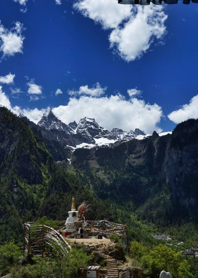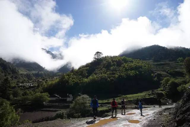 正式参赛选手8点就乘车前往飞来寺,梅里100的出发地。楼主和一同来打酱油的小伙伴包车一路颠簸来到大本营。还赶上了两星期以来的晴天(之前连续10多天阴雨),rp很好的我们看到了梅里雪山全貌。