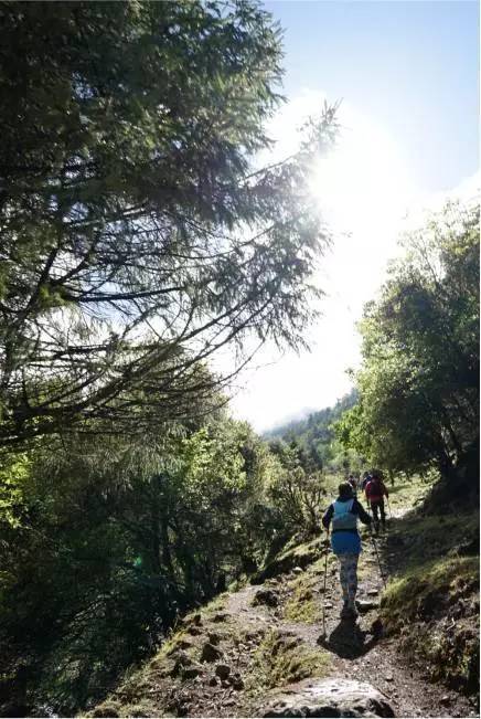 Day9 客栈老板小黑为我们准备了一条处女撒野路线,共16km,累计爬升1200m+,具体的地点,还是让老板告诉大家好了,楼主没有留gps轨迹。。开始5km全爬升(就是爬升1200m啦),略虐,路上一路碎石青苔(楼主最畏惧之路况。。。。)楼主野的山少,也就广州火龙冒线,香港麦理浩径,江西武功山,所以这玉龙雪山南面对楼主吸引力实在太大,第一次感受到进入迪斯尼版仙境。楼主才疏学浅,文字无法描述清楚美景,大家一起从图片感受现场最直接了~