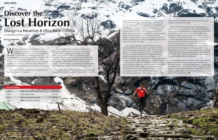 The July/August issue of Asia Trail magazine is out and we are honored that it features a 2-page race report from the Inaugural Shangri-La Marathon & Ultra. Giving runners and readers a taste of the experience that participants had while running the spectacular event in the grand Himalayan mountains last April.